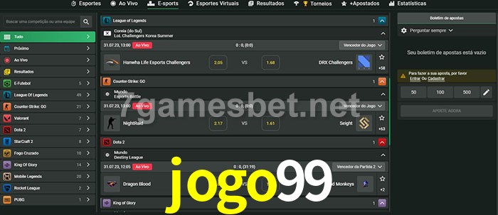 O jogo99 oferece uma grande seleção de opções de apostas em e-sports com probabilidades competitivas